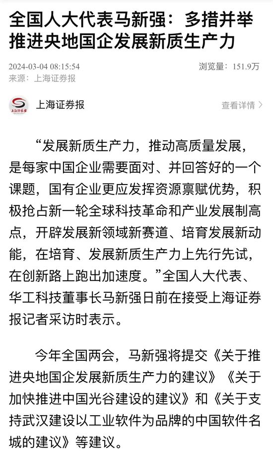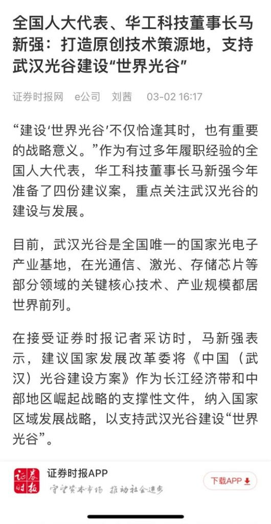 建設(shè)‘世界光谷’不僅恰逢其時(shí),也有重要的戰(zhàn)略意義。全國人大代表、華工科技董事長馬新強(qiáng)表示,打造原創(chuàng)技術(shù)策源地,構(gòu)建提升原創(chuàng)技術(shù)三大能力,推進(jìn)央國企發(fā)展新質(zhì)生產(chǎn)力,支持武漢光谷建設(shè)“世界光谷”。